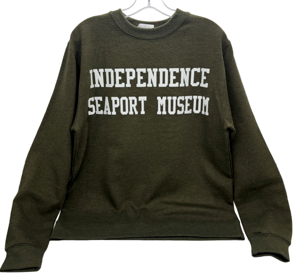 Show your love for Philadelphia’s waterfront history with this classic Independence Seaport Museum crewneck. Made from a soft, mid-weight cotton blend, it offers all-day comfort with a clean, timeless look. The deep forest-green color pairs perfectly with the bold white varsity-style lettering across the chest, giving it a vintage collegiate feel.