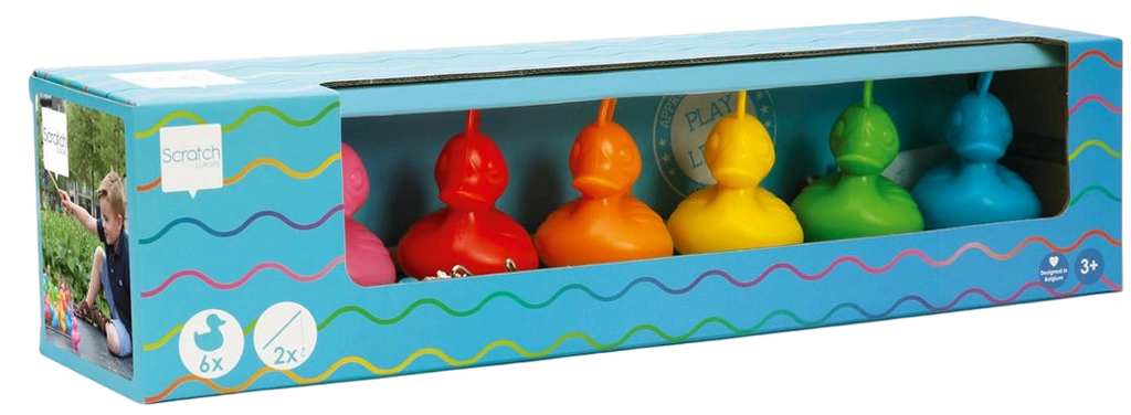 Set of 6 fun fair ducks and 2 fishing rods. The ducks are completely sealed, preventing mold from building up inside them Built-in counterweight, so ducks stay upright when in water The modern, trendy packaging makes this set an ideal gift
